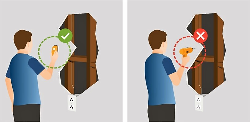 Trước khi khoan tường, bạn cần tìm hiểu, để ý dò xem kỹ hướng dây điện đi âm tường để tránh khoan trúng dây điện.