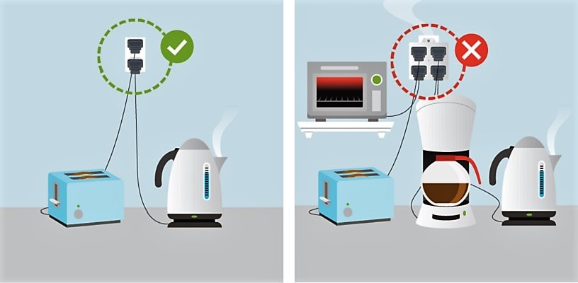 Tránh cắm quá nhiều thiết bị điện vào chung một ổ cắm điện, khi sử dụng cùng lúc. Việc này có thể làm quá tải ổ cắm điện, gây sinh nhiệt, dẫn đến nguy cơ cháy nổ.