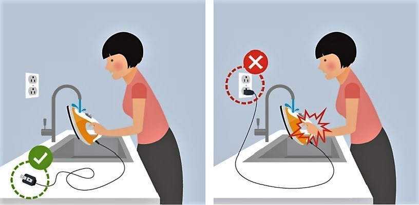 Trước khi đổ nước vào bàn ủi hơi nước, bạn phải chắc chắn rằng đã rút phích cắm khỏi ổ cắm điện. Luôn nhớ rằng nước dẫn điện rất tốt, không cẩn thận bạn sẽ bị điện giật!