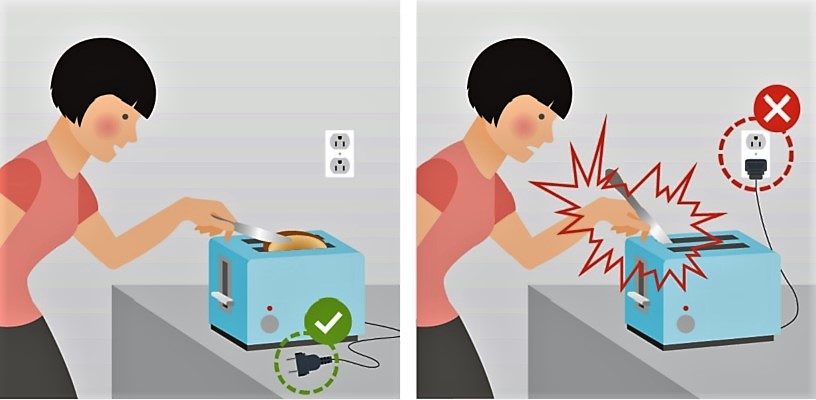 Không được dùng các vật kim loại như dao, muỗng, nĩa chạm vào máy nướng bánh khi máy đang có điện. Rò rỉ điện có thể xảy ra bất cứ lúc nào khiến bạn bị điện giật!