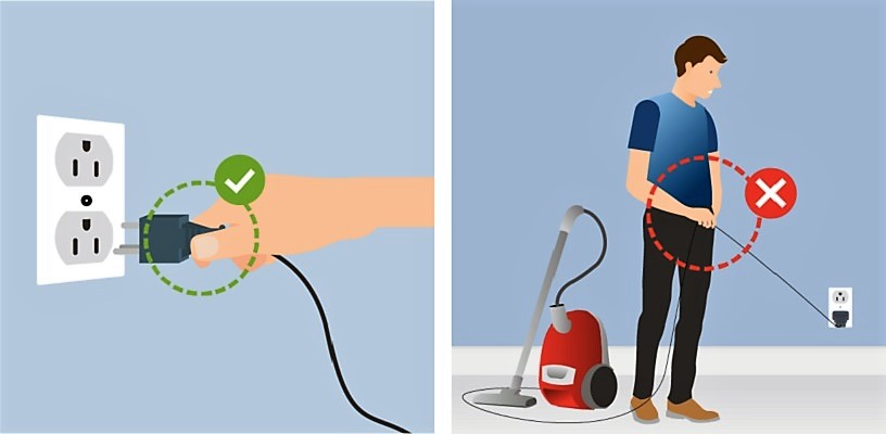 Khi rút phích cắm điện, bạn nên cầm ngay phích cắm, không được cầm dây phích cắm để kéo ra.