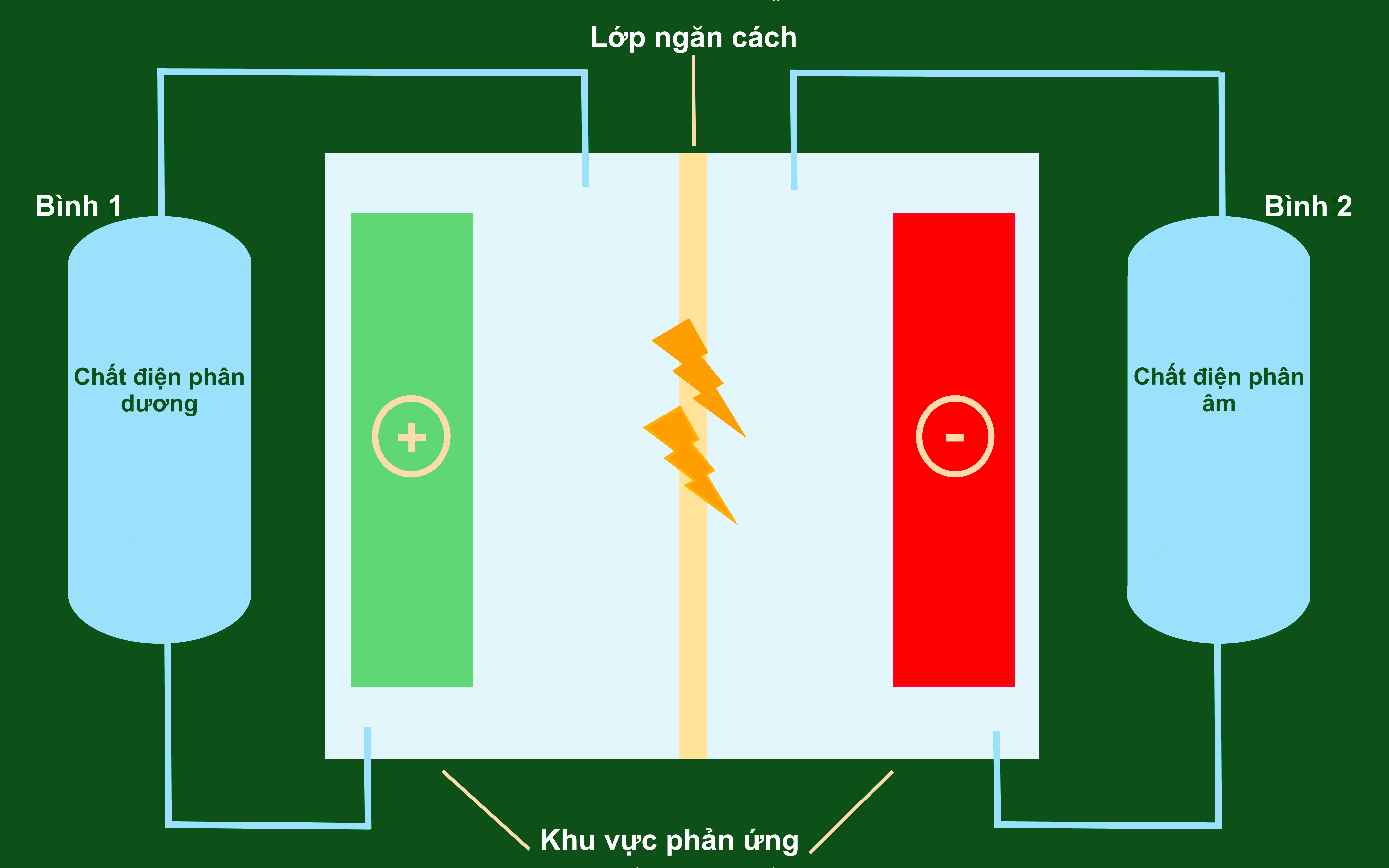 Chất điện phân không nằm trong “thân pin” mà lưu trữ trong bình chứa. Chúng chảy và tuần hoàn qua khu vực diễn ra quá trình chuyển đổi năng lượng. Các bình chứa kết nối với một hoặc nhiều cell, ở đó chất điện phân không pha lẫn mà ngăn cách bởi màng trao đổi ion. Pin dòng chảy còn có hệ thống ống dẫn, máy bơm để tuần hoàn chất điện phân.